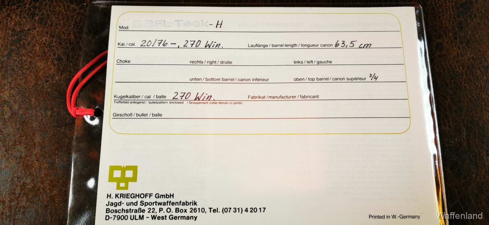 * Krieghoff Bockbuechsflintenkombination Mod. Teck cal. 20/76 .270Win+Austauschlauf mit ZF 20/76 .222Rem+ Austauschlauf 20/76 8x57IRS *
