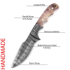 Damast Jagdmesser schöne Klingenmaserung Damast Stahl mit Lederhülle MAQ1301