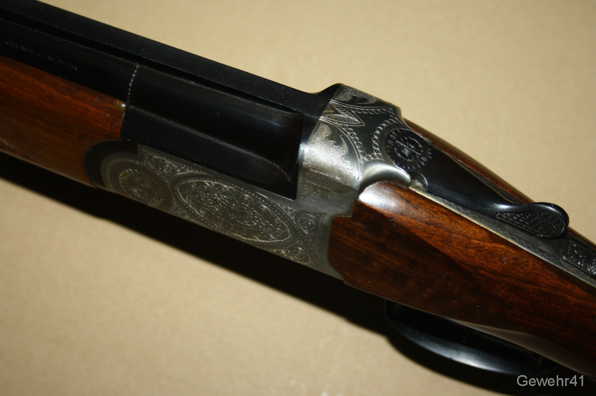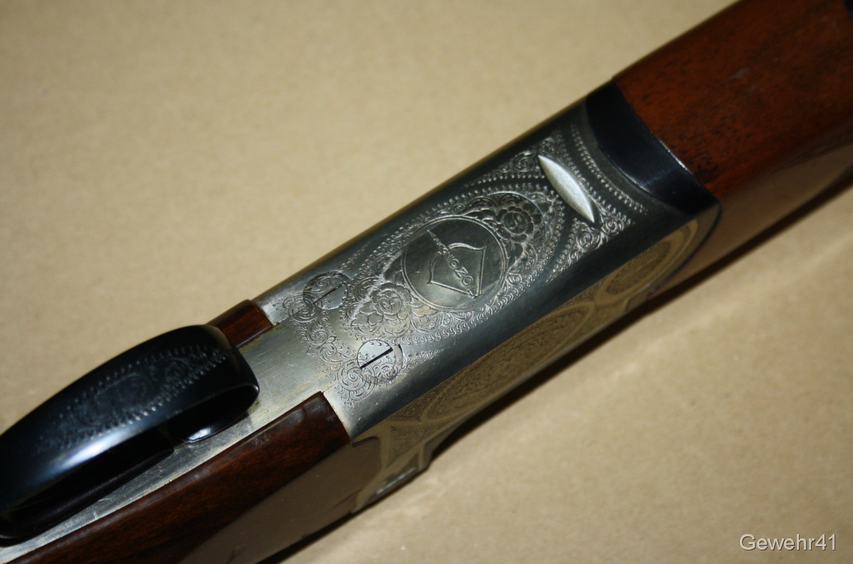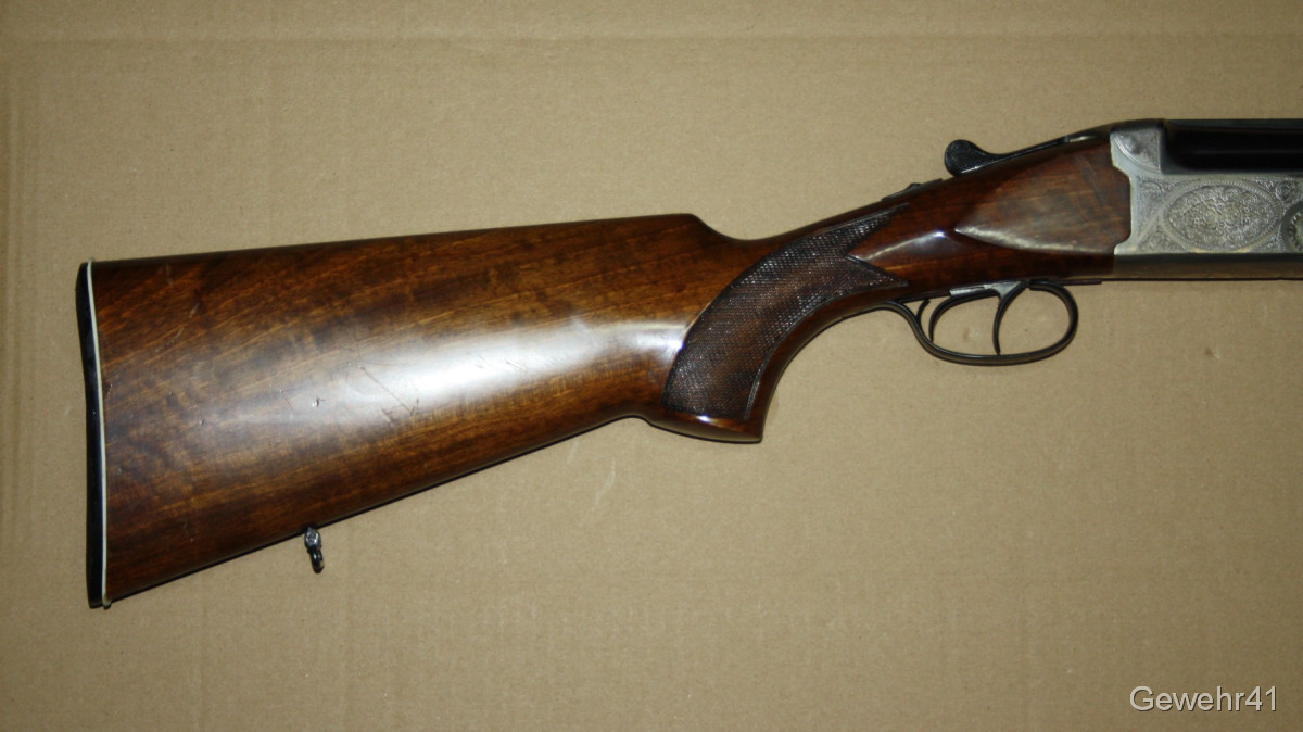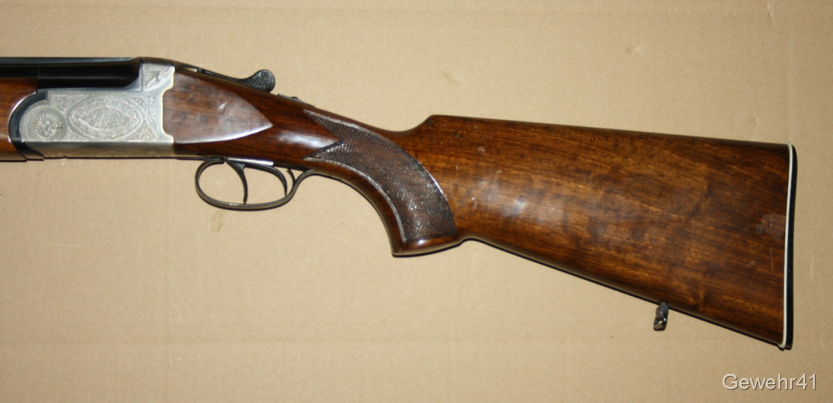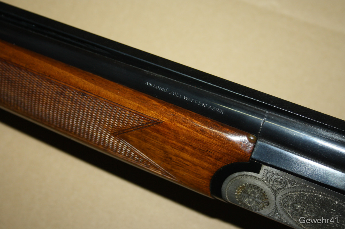 Bockdoppelflinte von Antonio Zoli im Kal. 12/70 im schönen, gepflegten Zustand mit nur leichten Gebrauchsspuren. Läufe und Funkton einwandfrei. Lauflänge 70,5cm, Schaftlänge 36cm, Gesamtlänge 113cm.