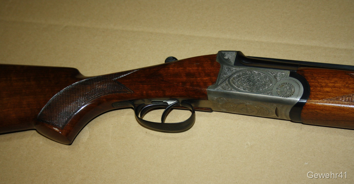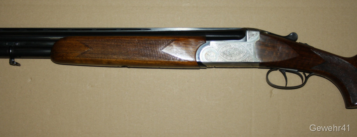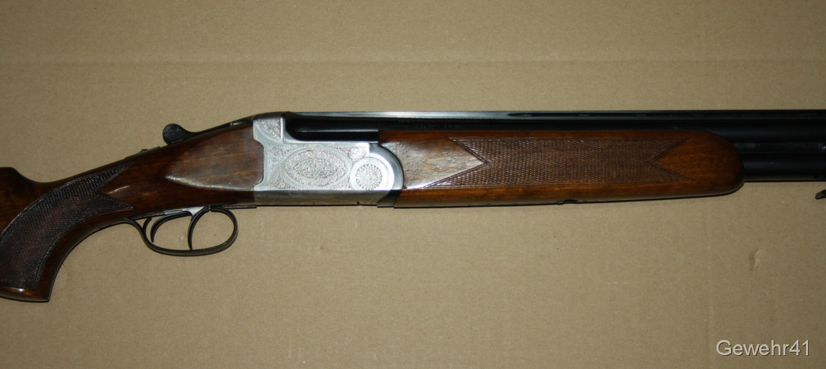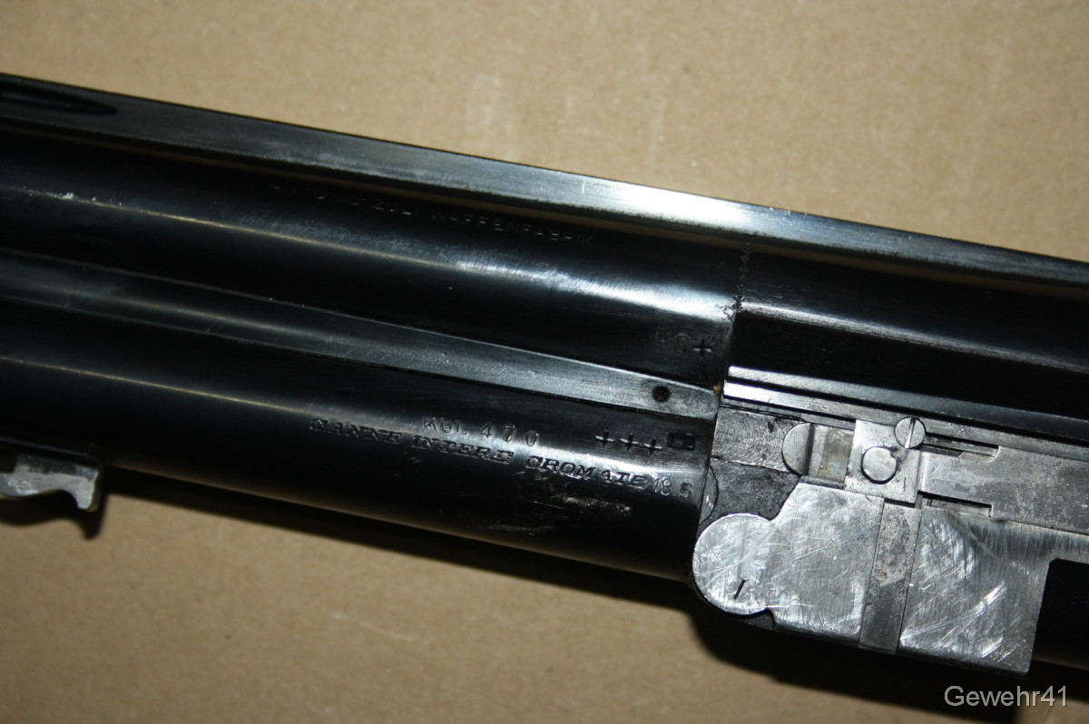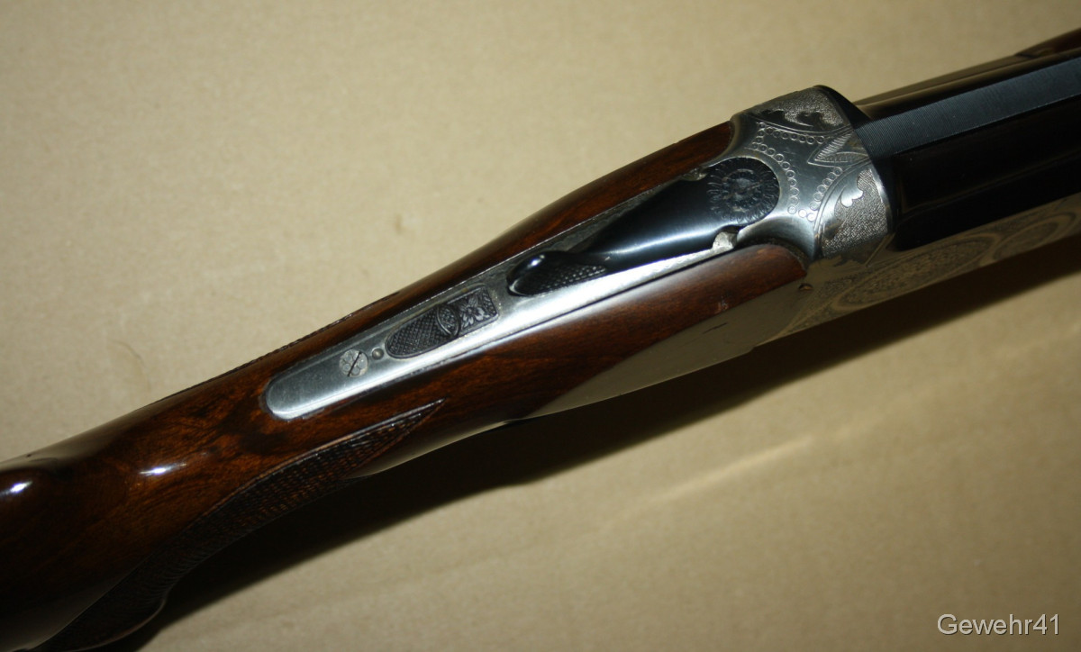 Bockdoppelflinte von Antonio Zoli im Kal. 12/70 im schönen, gepflegten Zustand mit nur leichten Gebrauchsspuren. Läufe und Funkton einwandfrei. Lauflänge 70,5cm, Schaftlänge 36cm, Gesamtlänge 113cm.