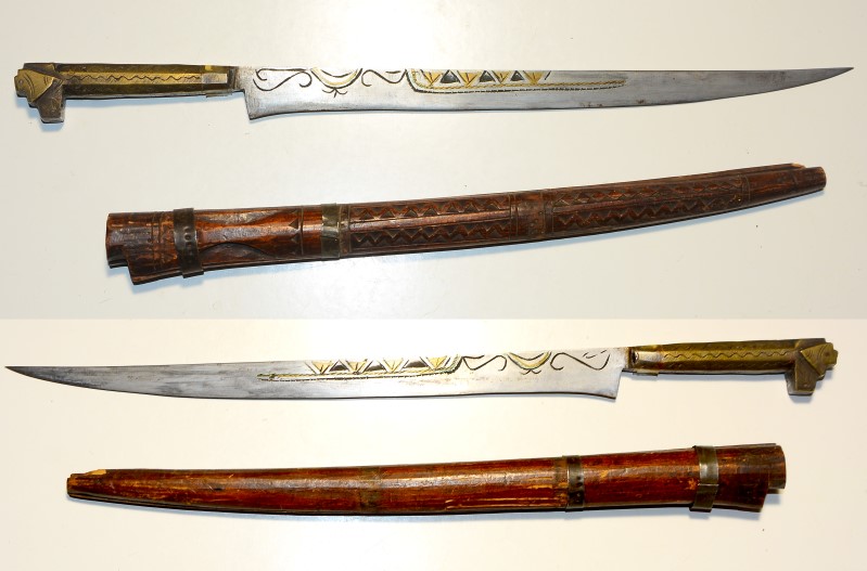 Flyssa Dolch mit 29,4 cm langer Klinge, Algerien, typische Ausführung, an der Holzscheide fehlen 2 Blechringe ansonsten guter bis sehr guter Zustand