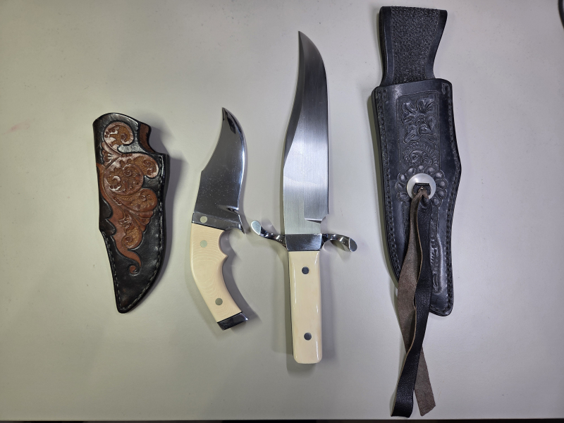 Beide Scheiden sind aus Echtleder, Handarbeit, sehr robust und passend zu den jeweiligen Messern.