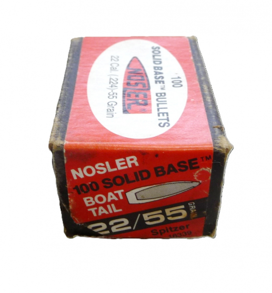 Hier werden 100 Nosler Geschosse, .224, 55 grain, Solid Base, Art.-Nr.: 16339 angeboten.