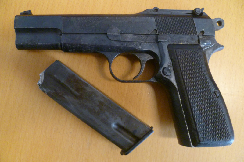 FN High Power M 1935 Capitan mit Tangentenvisierung bis 500m und Nut für Anschlagbrett.