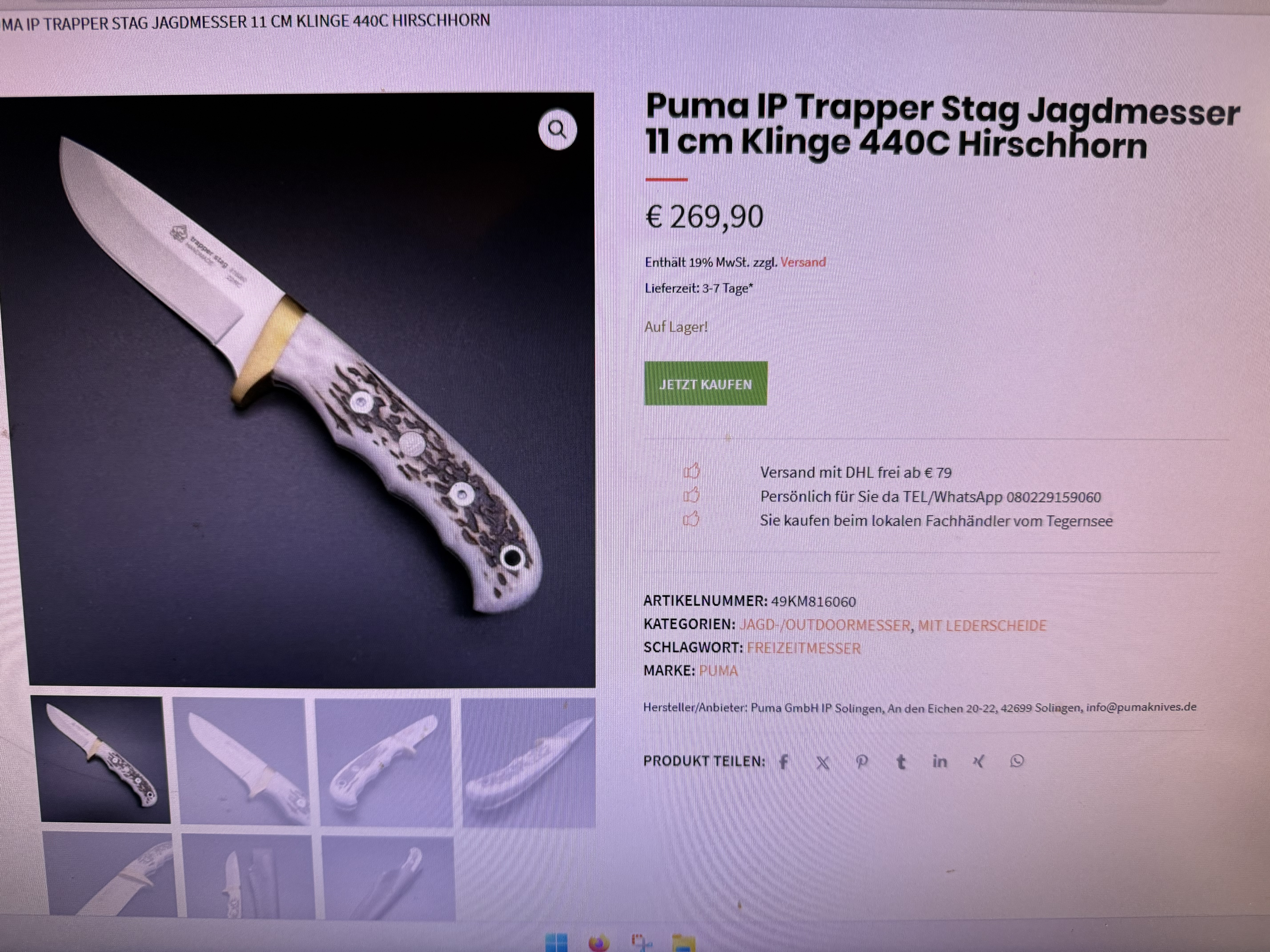 Puma IP Trapper Stag 816060 Jagdmesser Hirschhorn Klingenstahl 440C,11cm Klinge,