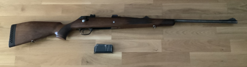 5 Schuss Einsteckmagazin...Waffe hat einen trocken stehenden Flintenabzug incl. einen franz. Stecher...