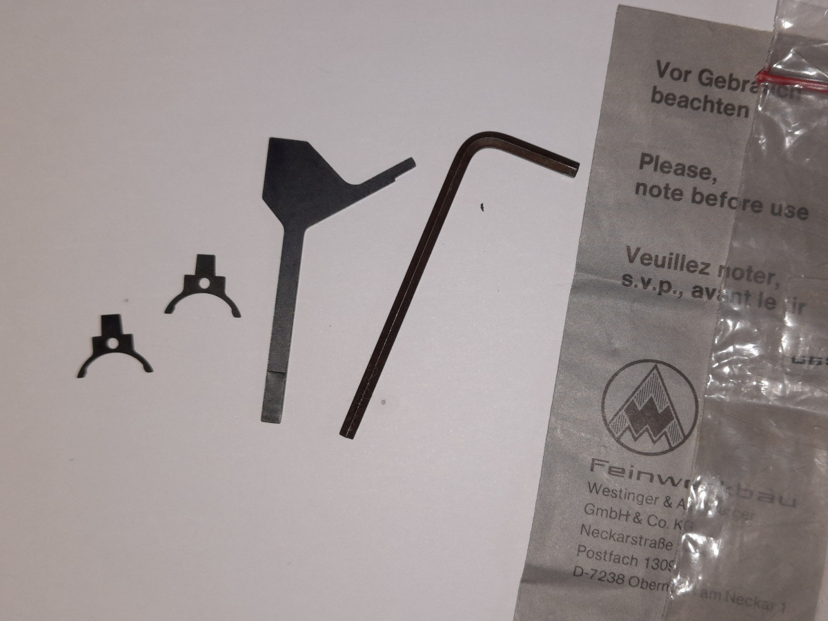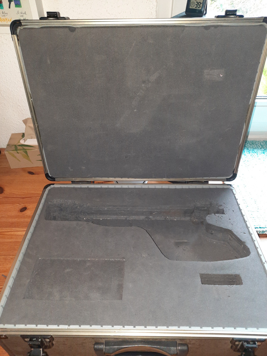 Originalkoffer, Werkzeug und 2 Kimmen dabei. Griff rechts, in der Neigung verstellbar.