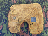 Das originale gepanzerte Sichtglas ist noch vorhanden, obwohl das Stahlschild selbst starke Korrosion und Beschädigungen aufweist, typisch für einen lange im Boden befindlichen Fund. Die charakteristische Form des Schildes sowie der Montageausschnitt sind weiterhin gut erkennbar.
