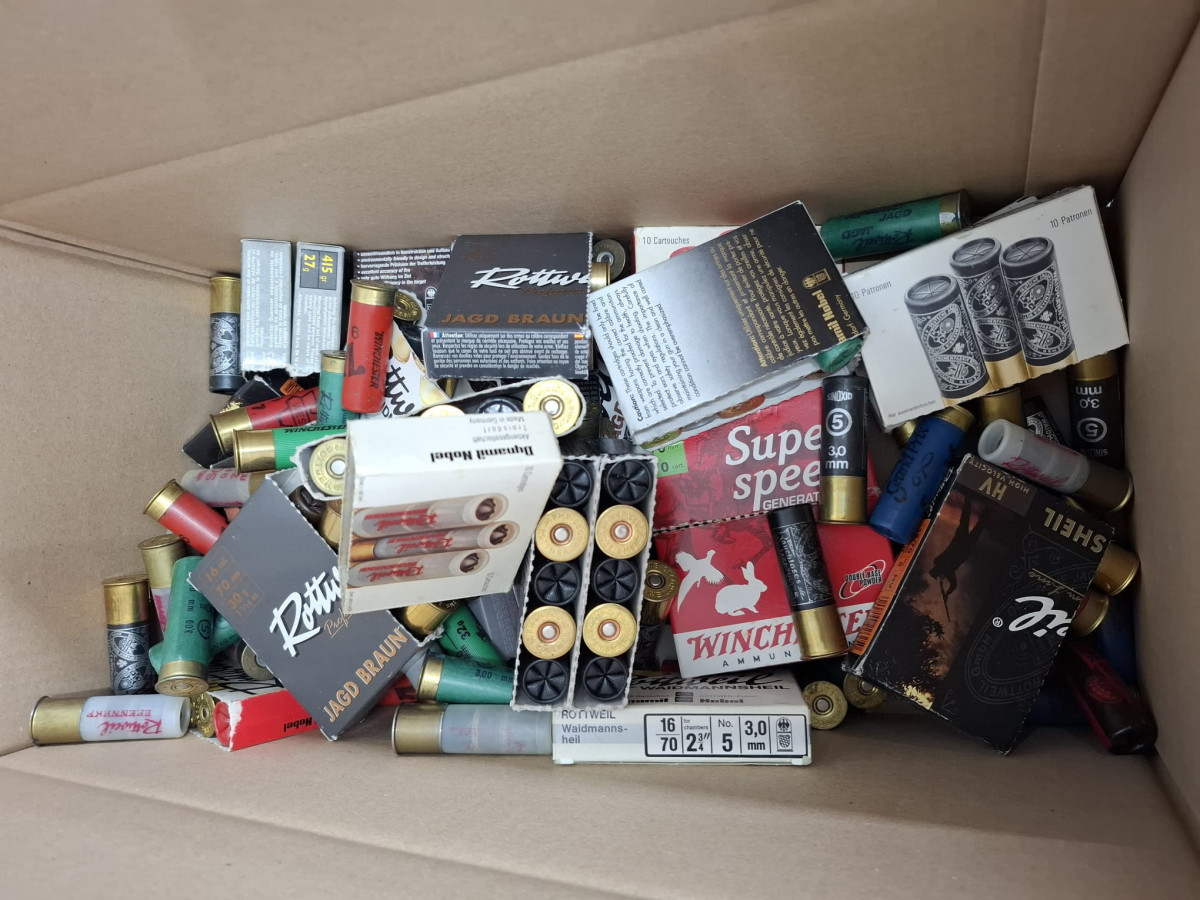Flintenmunition Kaliber 16 Konvolut aus Nachlass ca. 9 kg