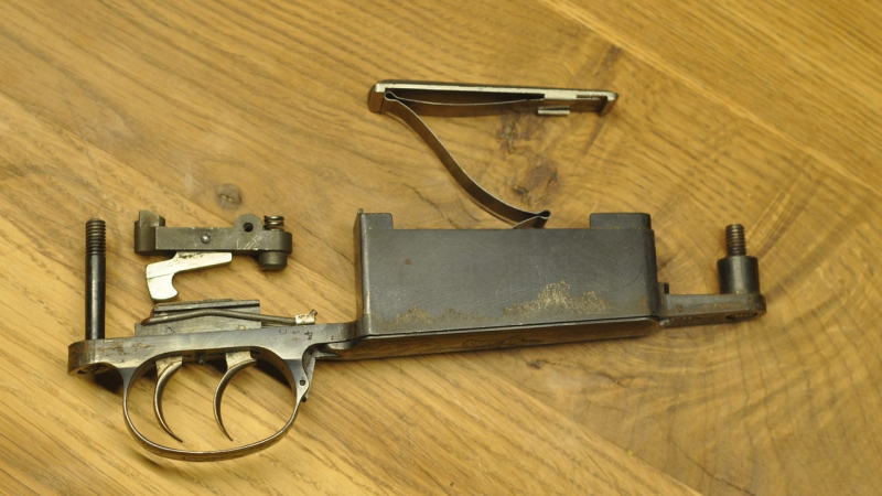 Biete hier einen Klappdeckel-Magazinkasten mit Stecherabzug für für 98er Systeme. Das Teil stammt von einer Brenneke-Büchse in 9,3x64. Es handelt sich um den FN-Magazinkasten der zivilen Systeme der 60er und 70er Jahre mit einer schönen, dezenten Eichenlaub-Gravur. Aufgrund des Innenmaßes von 87,5 mm nimmt es auch lange Patronen wie .300 WinMag, und kürzere .375 HH auf.