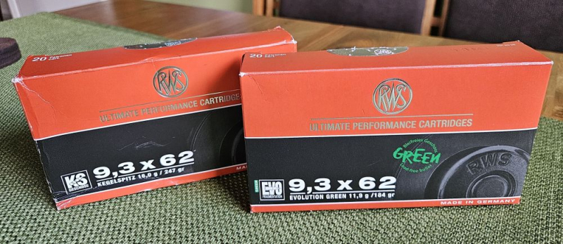 36 nur einmal geschossene Patronenhülsen des Kalibers 9,3x62, gefertigt von RWS, aus zwei verschiedenen Losen: