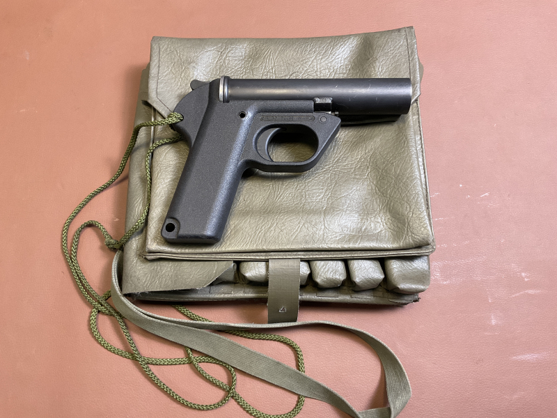 Zum Verkauf steht eine Heckler & Koch Signalpistole / Leuchtpistole, Modell RAK-PIST 78, im Kaliber 26,5 mm. Die Signalpistole hat Handhabungsspuren an der originalen Brünierung, besteht aus einem Kunststoffgriffstück, einer Kunststoff-Ledertasche mit dem originalen Putzstock.