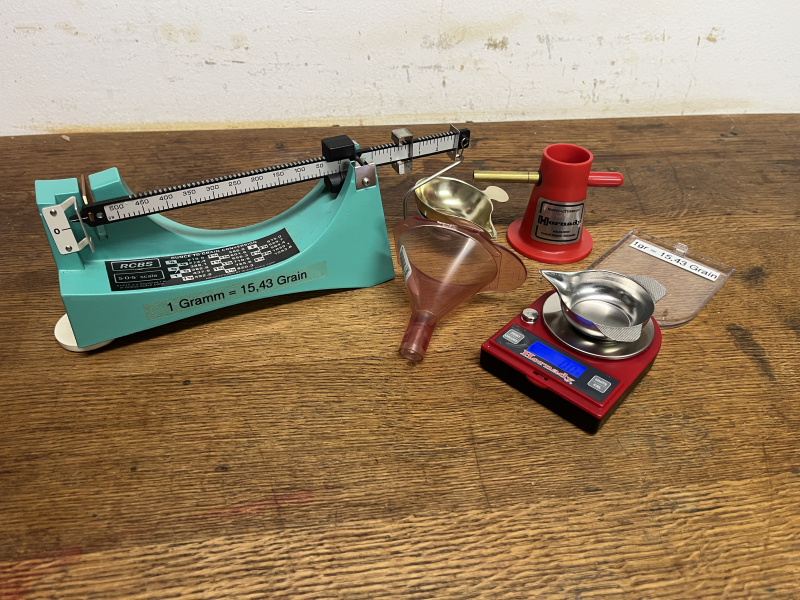 Biete das abgebildete Wiederlade-Zubehör (manuelle Waage, elektrische Waage, Trickler, Trichter)