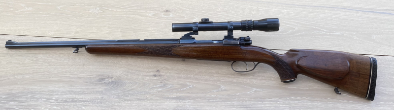 Es handelt sich um eine Repetierbüchse Modell 98 im Kaliber 8x57IS, kurze Ausführung ideal als Nachsuchen- oder Drückjagdwaffe.