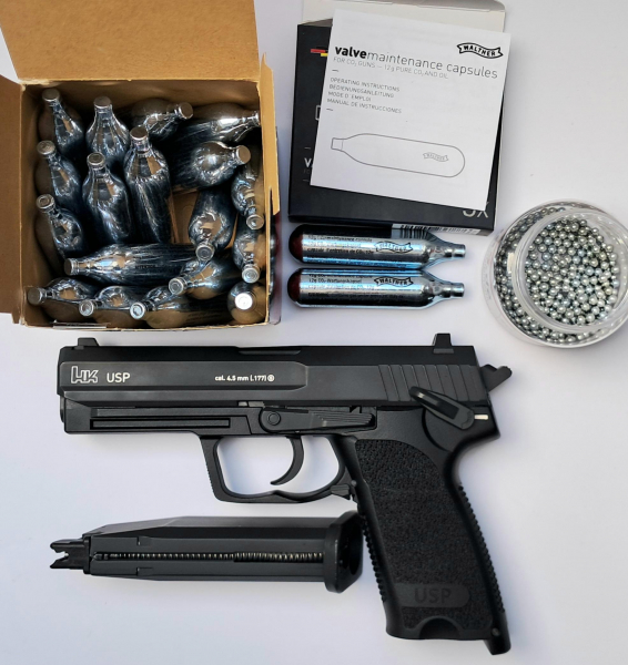Biete eine H&K Airsoft VP9 GBB (Co2) mit inklusive umfangreichem Zubehör an. Produktdetails & Zustand: • Modell: H&K USO, Black (Co2). • System: Gas Blowback (GBB) mit Metalllauf. • Energie: <3,0 Joule (inkl. „F“-Kennzeichnung). • Zustand: Gebrauchsspuren entsprechend der Bilder. • Lieferumfang: * Pistole inkl. Standardmagazin. • 18x Co2 Kartusche & 2x Walther Reinigungskartusche • ca. 150+ 4,5mm BB's Rechtlicher Hinweis: Verkauf ausschließlich an Personen ab 18 Jahren. Altersnachweis ist zwingend erforderlich. Abwicklung: • Standort: 67149 Meckenheim (Gerne Selbstabholung). • Versand: Versichert nach erfolgreicher Altersprüfung möglich. Haftungsausschluss: Privatverkauf unter Ausschluss jeglicher Gewährleistung oder Haftung, keine Rücknahme.