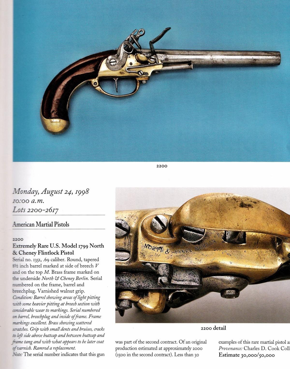 Nach der Amerikanischen Revolution war die erste in den USA hergestellte US-Kampfpistole das M 1799. Es war mit nur wenigen Änderungen dem M 1777 sehr ähnlich. Nur 2.000 Stück wurden von Simeon North und Elisha Cheney, einem Uhrmacher, in den Jahren 1799-1801 hergestellt.