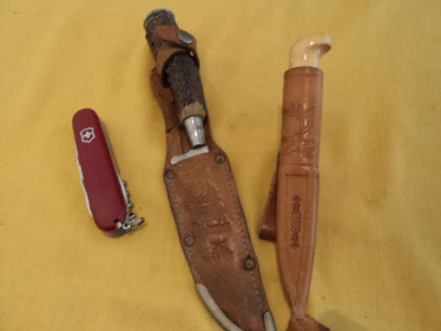 Kleine Messersammlung bestehend aus geb. Jagdnicker ca. 22 cm ( Griffkappe Verbeult), Finnenmesser ca. 14 cm und Schweizer Taschenmesser Victorynox ( Zahnstocher Fehlt) .Bitte beachten Sie auch meine anderen Auktionen und das Sie hier auf gebrauchte Artikel steigern ohne jeglicher Gewährleistung,Garantie,Rücknahme oder ähnlichen. Nach Erhalt des Geldes wird Ihnen der Artikel umgehend mit der DHL versichert zugestellt. Haftung für Verlust und Beschädigung die über das Maß der Haftung von DHL hinausgehen übernehme ich nicht. Viel Spaß beim bieten.