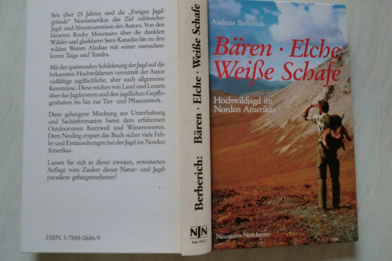 BÄREN - ELCHE - WEISSE SCHAFE - Hochwildjagd im Norden Amerikas - von Andreas Berberich, Verlag Neumann-Neudamm 1996, 300 Seiten mit sehr vielen farbigen Abbildungen und zwei Karten - Inhalt u.a.: COLORADO: Outdoors und Greenhorns / Zauber des Felsengebirges / Blue Mesa / Rocky Mountains Hig / KANADA: Jagen unterm Nordlicht / ALASKA: Barren Ground Caribous in der Tundra / Der Riesenelch / Schwarzbärengeschichten / Von weißen Schafen und braunen Bären / Ursus Arctos - König der Schöpfung / Grand Slam, die Schafe Nordamerikas - Guter bis sehr guter Zustand