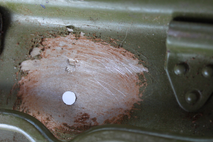 Noch Gut erhalten. Unbeschädigt. Die Farbe an den Stempeln mit einem Brenner gelöst und frei gebürstet, sonst unberührt. Die Farbe ist natürlich nicht Original.