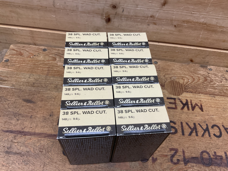 500 Patronen aus einer Charge im Kal..38 SPL von S&B mit WAD CUTTER Geschoss 9,6g, Menge siehe Bilder!