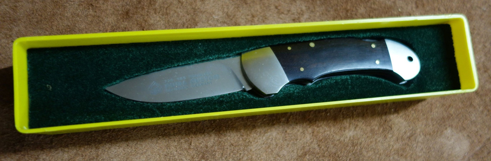 DAS MESSER WURDE NICHT BENUTZT, GETRAGEN ODER NACHGESCHLIFFEN, DIE BESCHRIFTUNG IST NOCH VOLLSTÄNDIG, MINIMALE LAGERSPUREN KEINE GARANTIE, KEINE RÜCKNAHME, KEINE GEWÄHRLEISTUNG, DA PRIVATVERKAUF!
