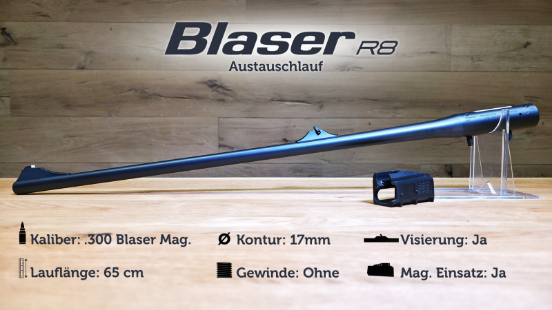 Blaser R8 Austauschlauf / .300 Blaser Mag. / LL 65cm / Kontur 17mm / offene Visierung / NEU