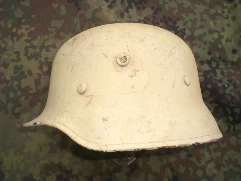 Der Helm wurde nach dem Kriege in der Feuerwehr weitergetragen und später dann nochmals nachgerüstet durch die Leuchtfarbe.