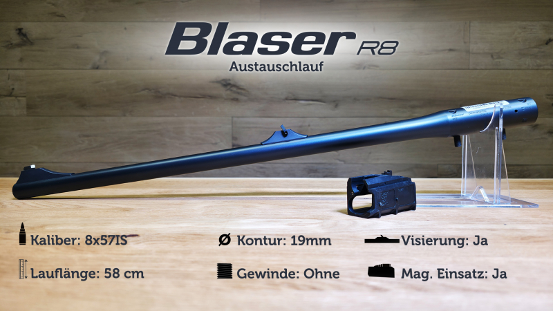 Blaser R8 Austauschlauf / 8x57 IS / LL 58cm / Kontur 19mm / offene Visierung / NEU