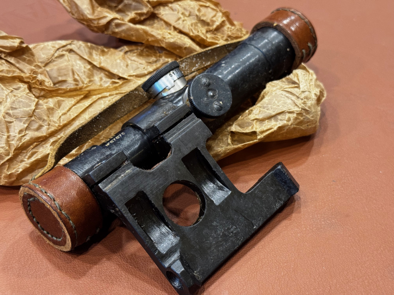 Zum Angebot gehört neben dem Zielfernrohr auch die klassische PU-Seitenmontage, sowie die originale Tasche und Lederschutzkappen.