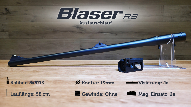 Blaser R8 Austauschlauf / 8x57 IS / LL 58cm / Kontur 19mm / offene Visierung / NEU