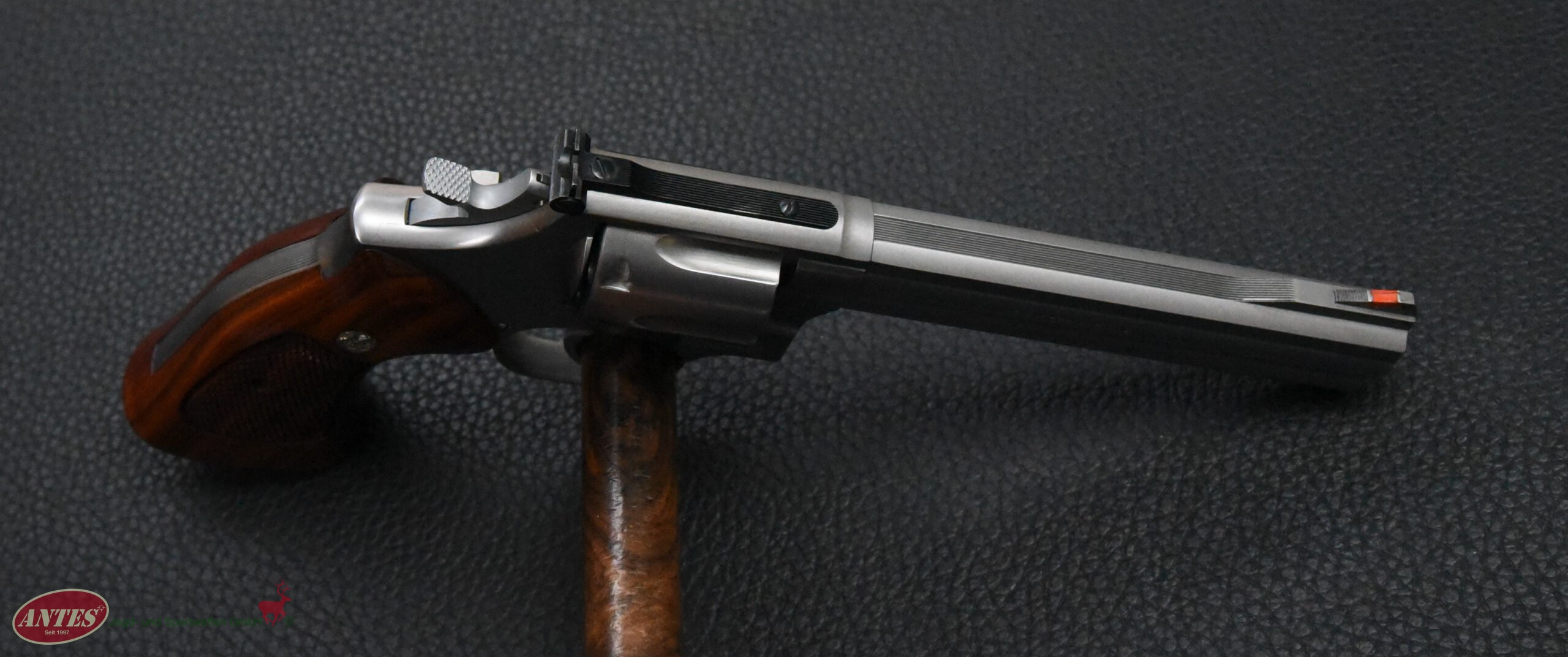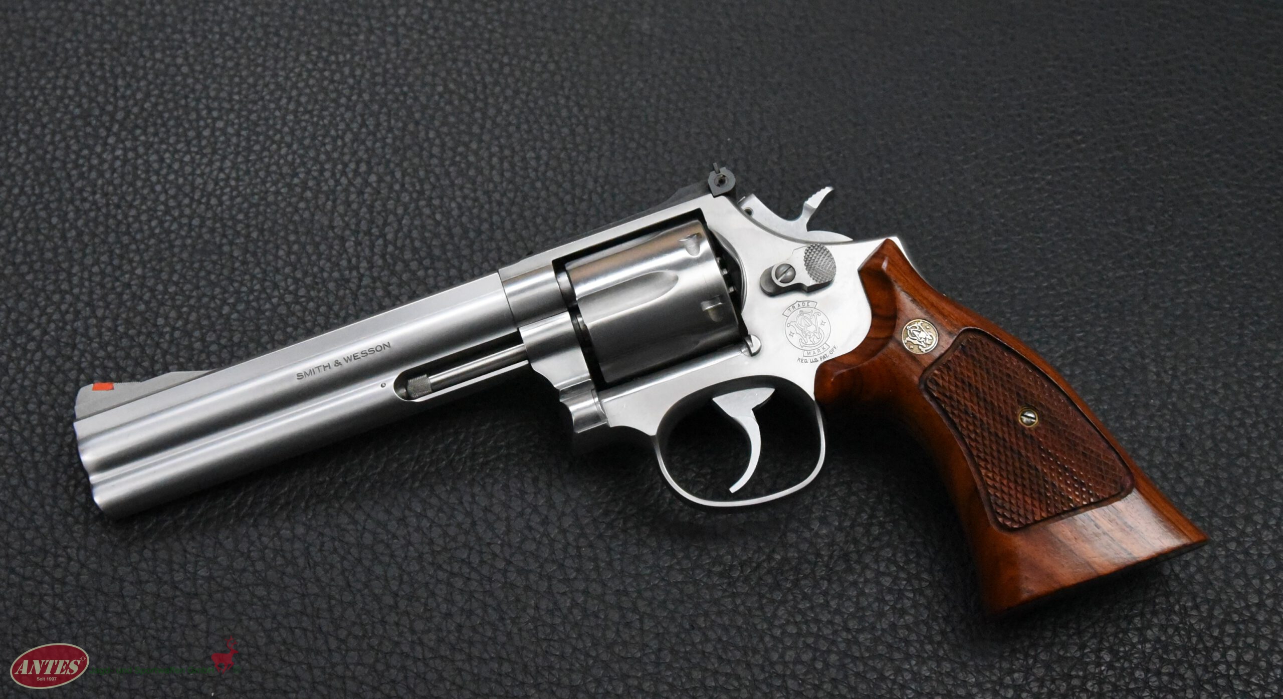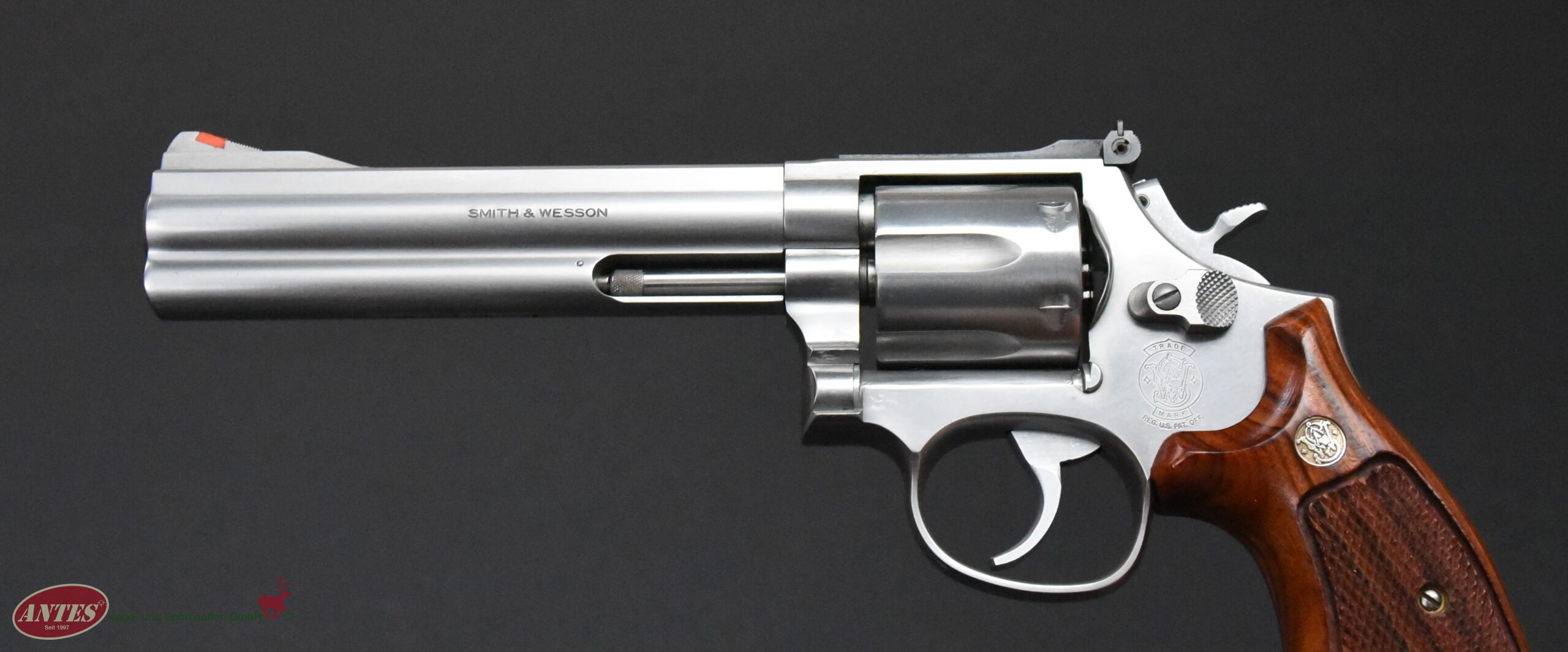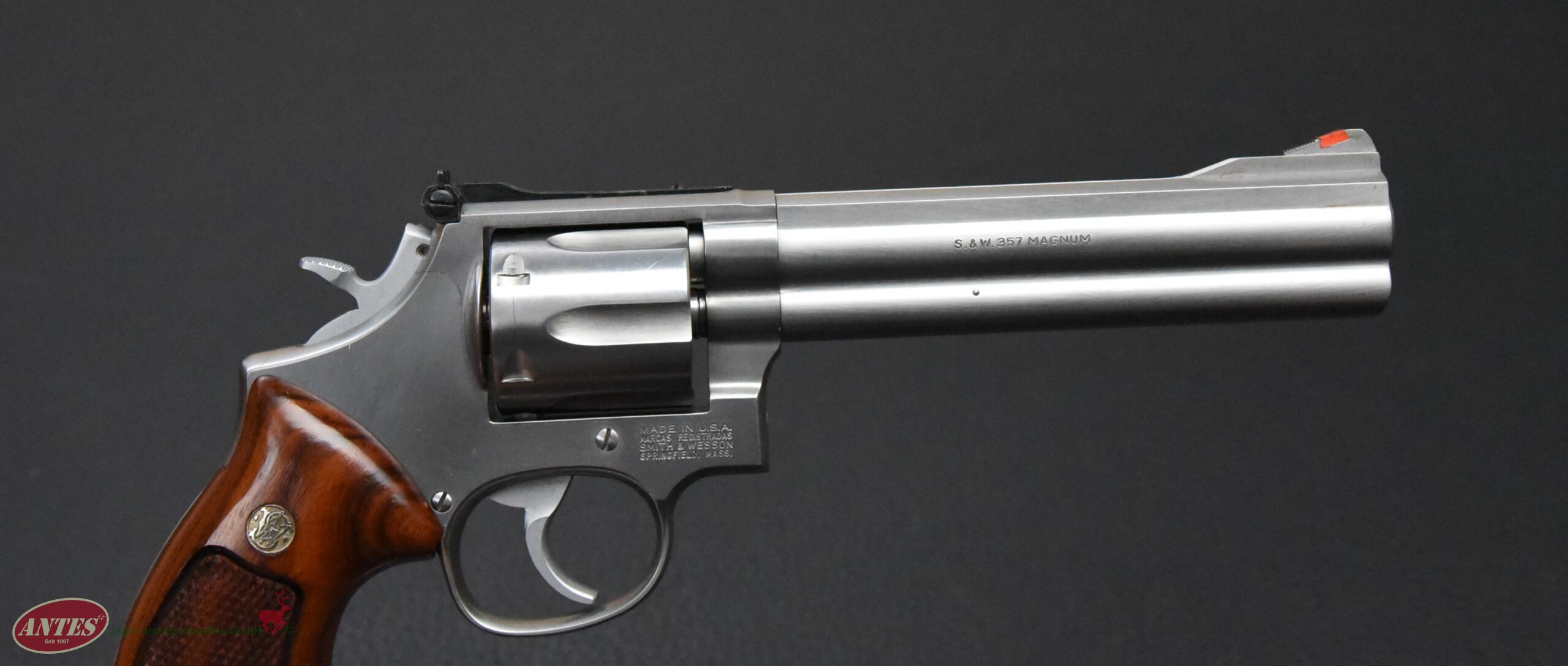 Mit original S&W Holzgriffschalen.