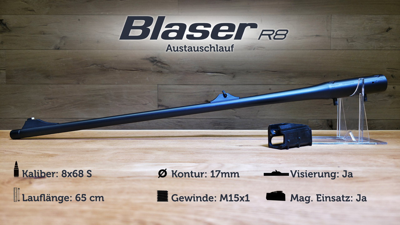 Blaser R8 Austauschlauf / 8x68 S / LL 65cm / Kontur 17mm / offene Visierung / M15x1 / NEU