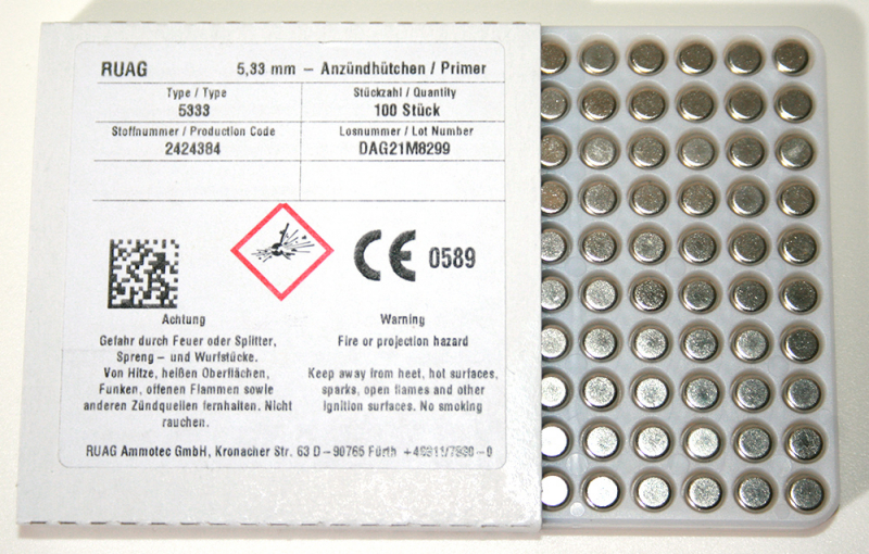 Bei den Zündhütchen ist der Vergleich des Magnum-Hütchens Sinoxid 5333 mit dem Standard-Zündhütchen 5341 interessant.