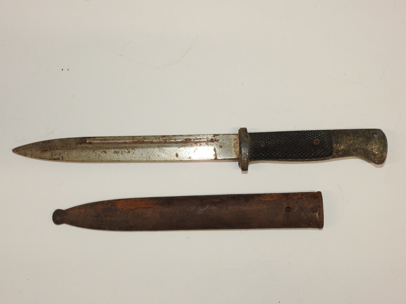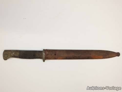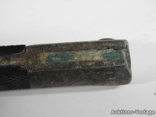 Bakelit Griffschalen. Schrauben ungeöffnet, Drücker nicht funktionsfähig, das Stoßleder sowie der grüne Filzstopfen für Gebirgsjäger vorhanden, mit Scheide.