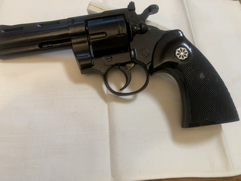 Biete Revolver Python von Umarex an . Optisch sehr gut . Voll funktionsfähig . Gereinigt , geölt und geprüft . Geliefert wird : Koffer , Abschussbecher , Bürste , Bedienanleitung und Explosionszeichnung .Privatverkauf
