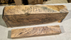 Die ersten Aufnahmen entstanden auf einem leicht angefeuchteten Holzbrett, um die Farben und die Schönheit des fertigen Produkts realistischer darzustellen. Das letzte Bild zeigt die Maße in Zentimetern. Die Konturen wurden auf die tatsächlichen Abmessungen der Blaser F3 übertragen. Die Teile wurden fünf Jahre lang luftgetrocknet. Auf Dampftrocknung wurde verzichtet, um die Farben und die natürlichen Harze des Holzes zu erhalten. Das Ergebnis ist ein elastischerer, festerer und schönerer Schaft