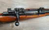 Die Büchse hat Schwenkmontagebasen montiert, einen Abzug mit Rückstecher, Riemenbügel und eine typische K98-Visierung.