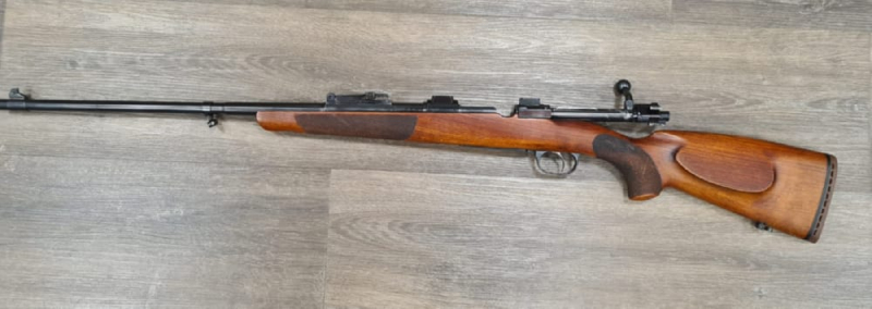 Das System dieser Büchse ist ein original Mod. 98 System mit zeitgenössischer WaA-Bestempelung. Der Lauf im neuen Kaliber wurde 1991 verbaut und entsprechend beschossen. Der Schaft ist jagdlich modern.