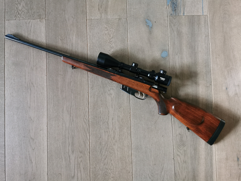 Zum Verkauf kommt eine gepflegte Walther KKJ im Kaliber .22Hornet mit einem Tasco 3-9x50 Zielfernrohr mit Leuchtabsehen 4 (Zustand siehe Bilder).
