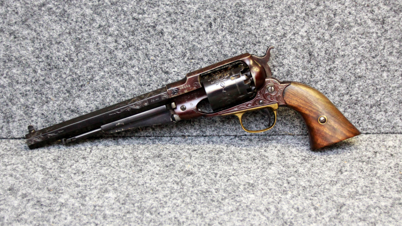 Sie bieten hier auf einen echten Klassiker unter den Perkussionsrevolvern: Eine Santa Barbara New Model Army (Nachbau des legendären Remington 1858).