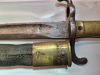 Scheide aus Leder mit Buntmetallbeschlägen, diese mit schöner Patina! Mundblech gestempelt.