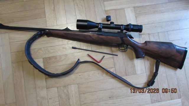 Solide Repetierbüchse, dt. Backe, fr. Stecher, Druckknopfsicherung, Kimme und Korn, Einsteckmagazin für 3 Patronen, gültiger Beschuss von 2002 ist vorhanden, Riemenhalter mit Schnellverschluss und Niggeloh Riemen, zwei Stk. Werkzeug sind dabei. Zielfernrohr Swarovski Habicht 3-12x50 Abs. 4 mitvergrößernd (die Beleuchtungseinheit zur Montage auf dem oberen Turm wird mitgeliefert ist aber vermutlich defekt und wird auch als defekt mit verkauft), 30mm Mittelrohr in sehr gutem gebrauchtem Zustand auf Schwenkmontage.