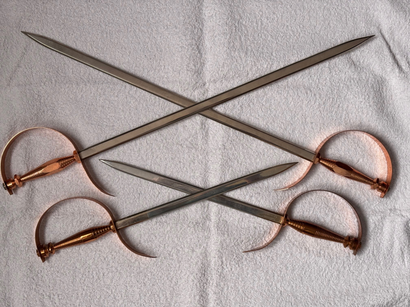 Zum Verkauf steht dieses Konvolut Blankwaffen bestehend aus zwei Degen und zwei Dolchen. Es handelt sich hier um Deko-Blankwaffen/Wandschmuck aus der ehemaligen DDR, 1970er oder 1980er Jahre. Hersteller-Markierung auf einem der Degen: Ein Kühn-Erzeugnis, Handarbeit. Länge Degen: 52,5 cm. Länge Dolch: 36,0 cm.