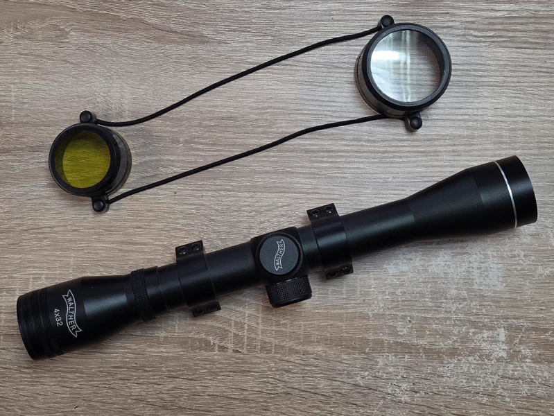 Sie bieten hier auf ein Walther Zielfernrohr 4x32 inklusive 11 mm High Power Montage für Luftgewehre. Das Zielfernrohr eignet sich grundsätzlich für Luftdruckwaffen mit entsprechender 11 mm Prismenschiene.
