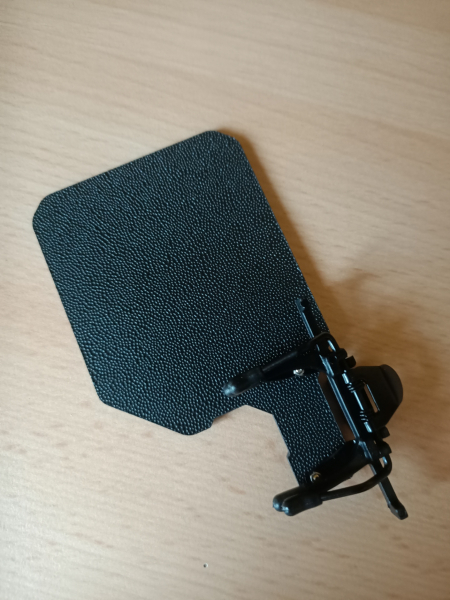 Große Augenblende zum Aufklemmen auf die normale Brille, jetzt für das linke Auge, sollte auch für das andere