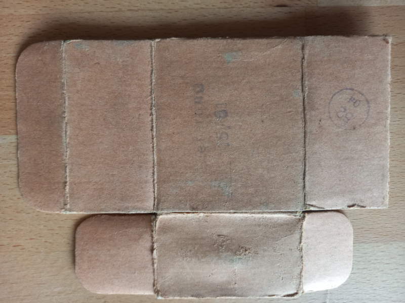 Leere Schachtel für Kurzpatronen aus der DDR. Faltfähig, alle Laschen dran.