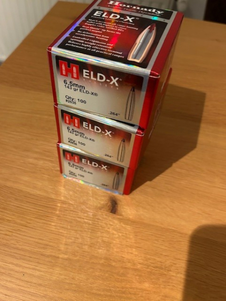 Sie bieten hier auf Hornady ELD-X Geschosse im Kaliber .264 / 6,5 mm mit einem Geschossgewicht von 143 gr.