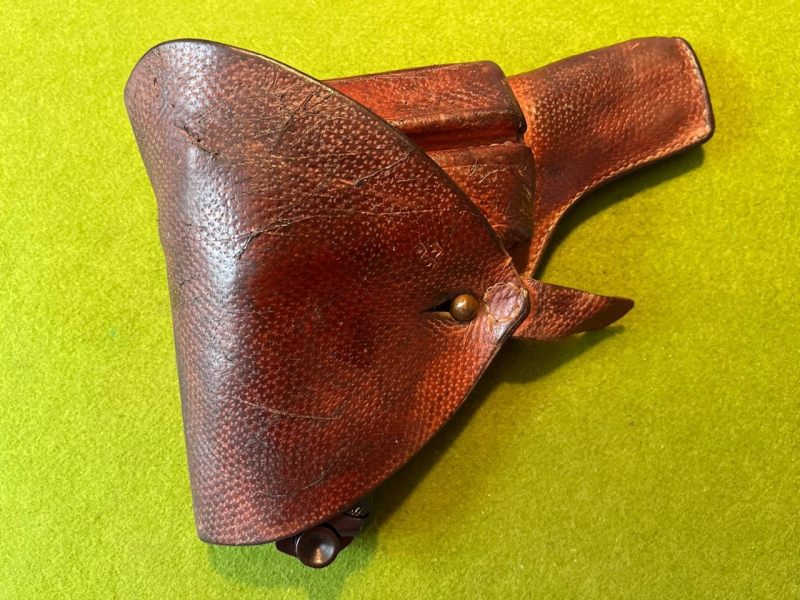 Das Holster ist alt, und sicher interessant als Ergänzung für eine Vitrinenwaffe, sei es wenn man die richtige oder "nur" ein Modell der scharfen Waffe hat.