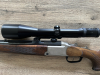 Angeboten wird eine Bockbüchsflinte Blaser 700/88 in den Kalibern .30-06 Spring. / 12/70. Verbaut sind ein Einstecklauf im Kaliber .22 Hornet und ein Zielfernrohr Zeiss Diavari 3-12x56. Das Zielfernrohr hat zwei kleine Kratzer - das Absehen 4A ist klar erkennbar.