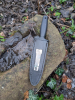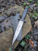 Die Klinge besteht aus Kohlenstoffstahl (kein Edelstahl), was sich durch leichte, oberflächliche Rostspuren zeigt. Diese lassen sich bei Bedarf problemlos entfernen. Der Dolch ist stabil gebaut und liegt gut in der Hand.
